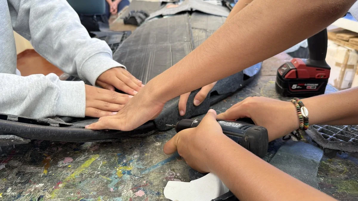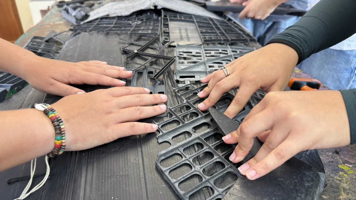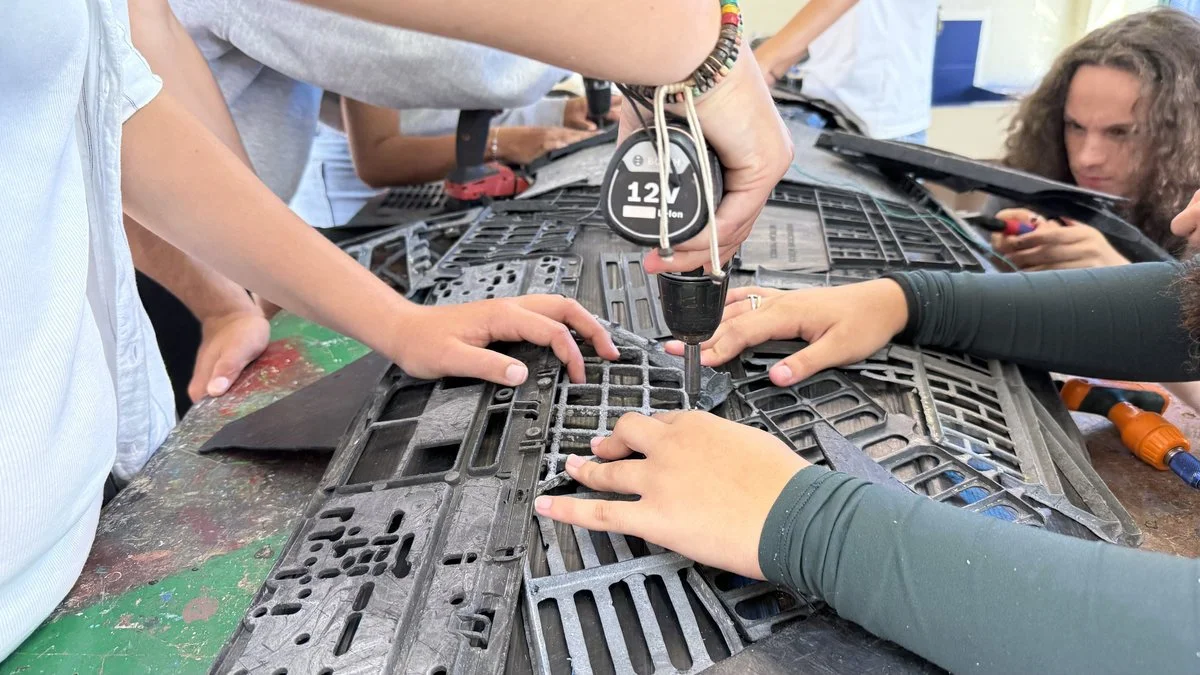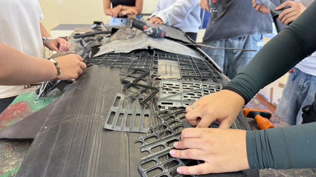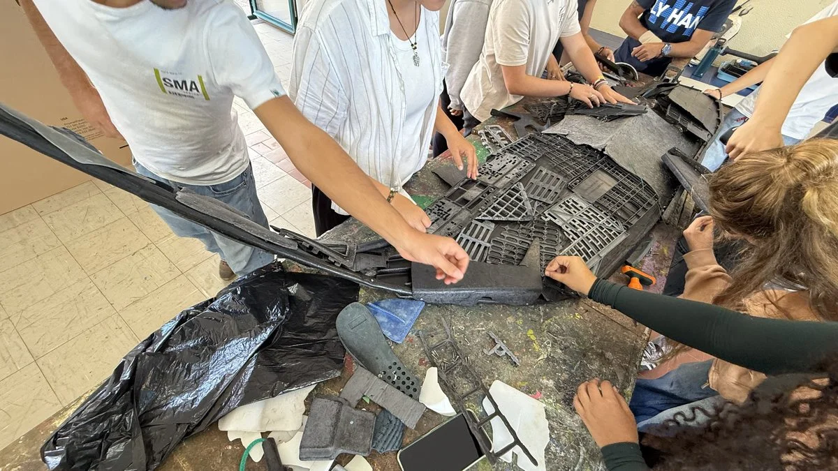 We started with a few playful exercises, then moved on to individual pieces, and finally launched a challenge: to create a large collective piece. I thought I would only guide them at the beginning and that, after I left, they would finish the work on their own.